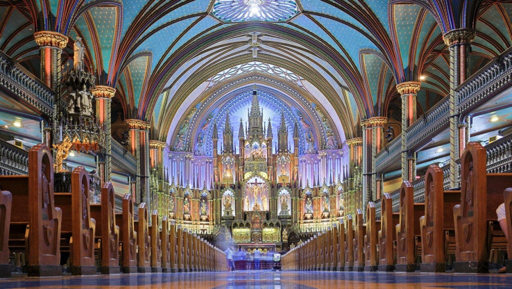 몬트리올의 구시가지에 위치한 "노트르담 대성당"은 1820년대에 건설된 로마 가톨릭 교회입니다. 이곳의 최대 명소는 7,000개의 파이프를 갖춘 세계 최대 규모의 파이프 오르간입니다. 현재 매주 일요일 미사에서 그 아름다운 음색을 들을 수 있으며, 여름철에는 콘서트도 열립니다.