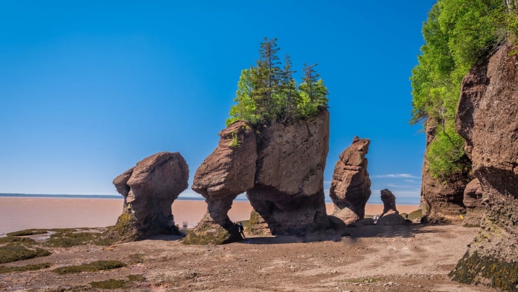캐나다 동부 뉴브런즈윅 주와 노바스코샤 주 사이에는 세계 최대 조수 간만의 차를 자랑하는 펀디 만이 있습니다. "호프웰 록스"는 최대 16m에 달하는 조수 간만의 차를 직접 관찰할 수 있는 명소입니다.