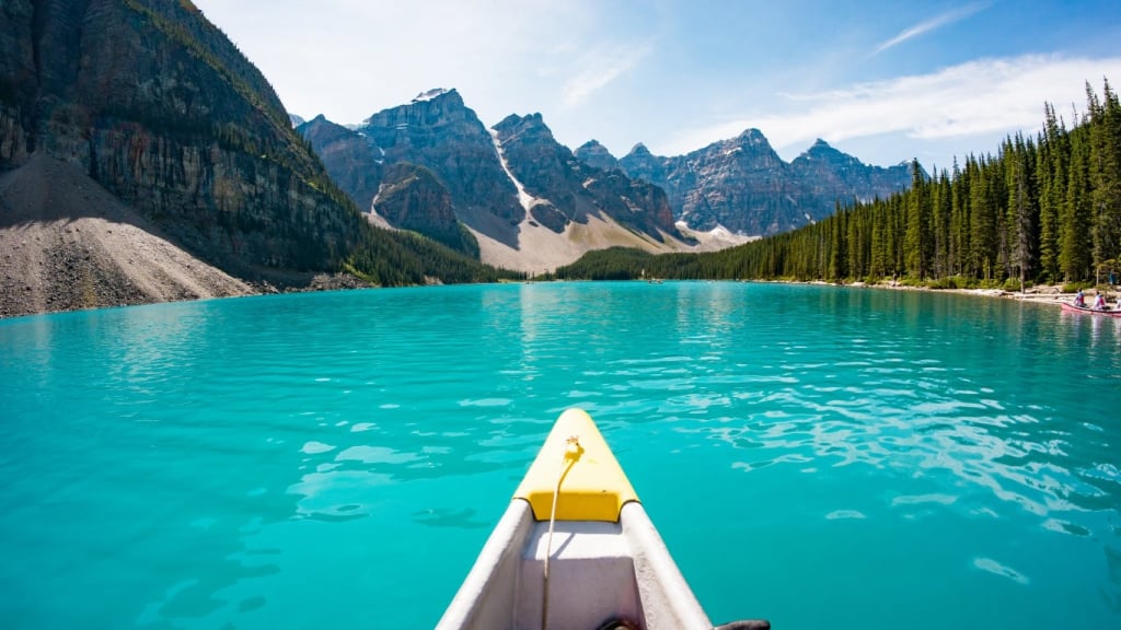 세계에서 가장 아름다운 호수로 불리는 "모레인 호수"는 밴프 국립공원 내 해발 1885m 지점에 위치해 있습니다. 터키석 같은 청록색 물빛은 빙하에 포함된 광물질이 태양광에 반사되어 만들어진 자연의 색입니다. 숨이 멎을 듯한 절경에 자연의 신비로움을 느끼지 않을 수 없습니다.
